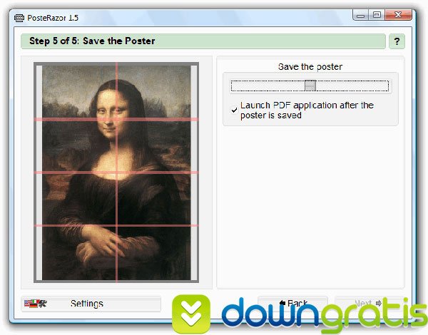 O Posterazor é um programa muito simples de ser utilizado, não necessitando de conhecimentos muito avançados em edição de imagens. O programa é tão simples mesmo que vem com um assistente pré-configurado para fazer suas imagens gigantes, sem precisar pensar muito. Basta escolher uma foto na tela que vai abrir na abertura do software. Assim que a imagem for selecionada, os usuários poderão definir o tamanho final do papel que será impresso a imagem no resultado final.